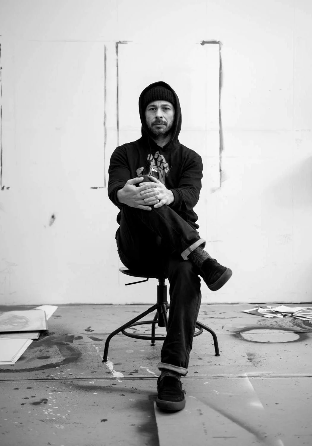At the heart of his work is the human figure – as form, public presence, and identity. This focus shapes series like Graffitecture (graffiti meets architecture), Typokinetics (movement meets typography), and Monotype, which explores one-of-a-kind prints combining gesture and typographic clarity.